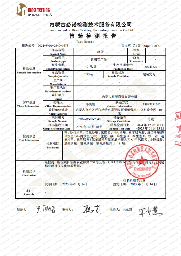 雞蛋檢驗(yàn)檢測報(bào)告